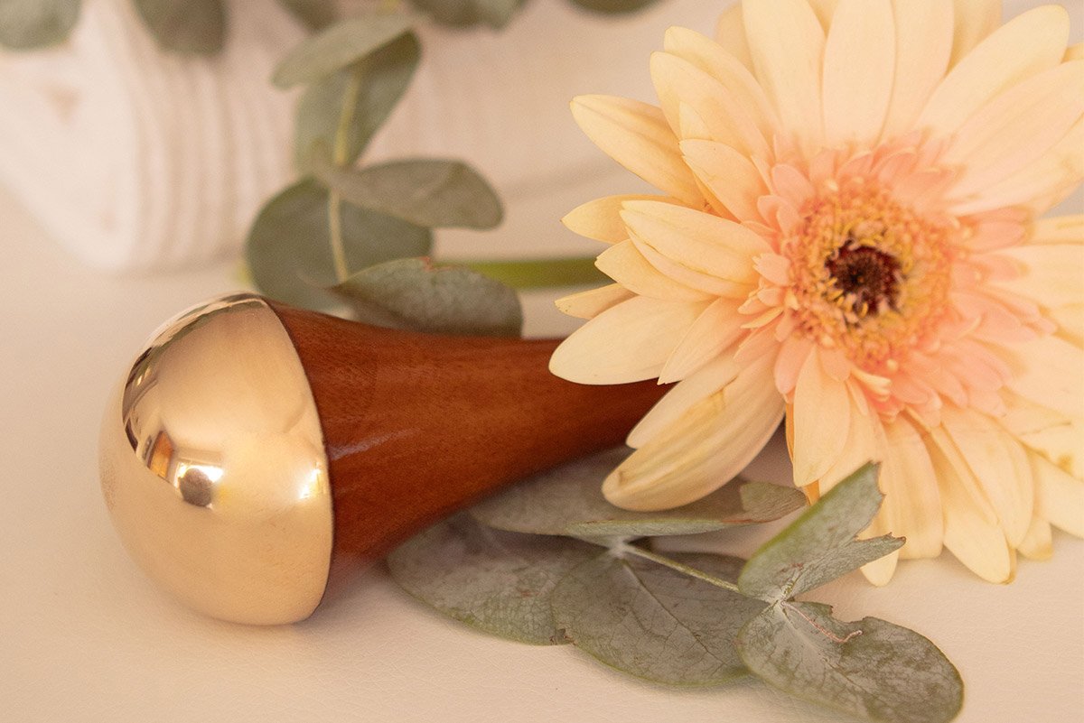 Le soin Kansa Wand tire son nom du sanskrit « Kansya », qui signifie alliage métallique, et de l’anglais « Wand », signifiant baguette. Cet outil traditionnel ayurvédique, composé principalement de cuivre, d’étain et de zinc, est utilisé pour un massage doux et profond du visage, du crâne, du cou et des épaules.
