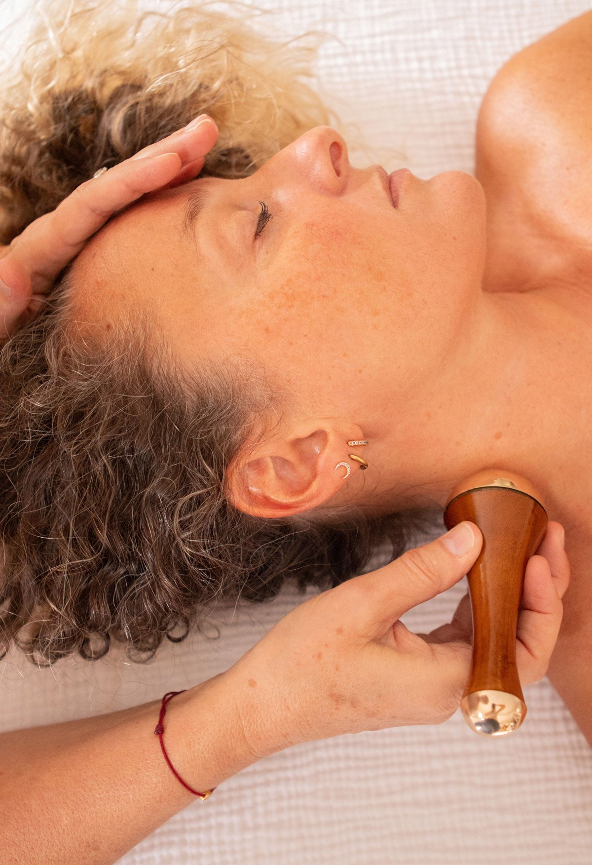Ce soin invite à relâcher profondément les tensions du visage et du mental, et à retrouver une sensation de calme, de clarté et de légèreté.